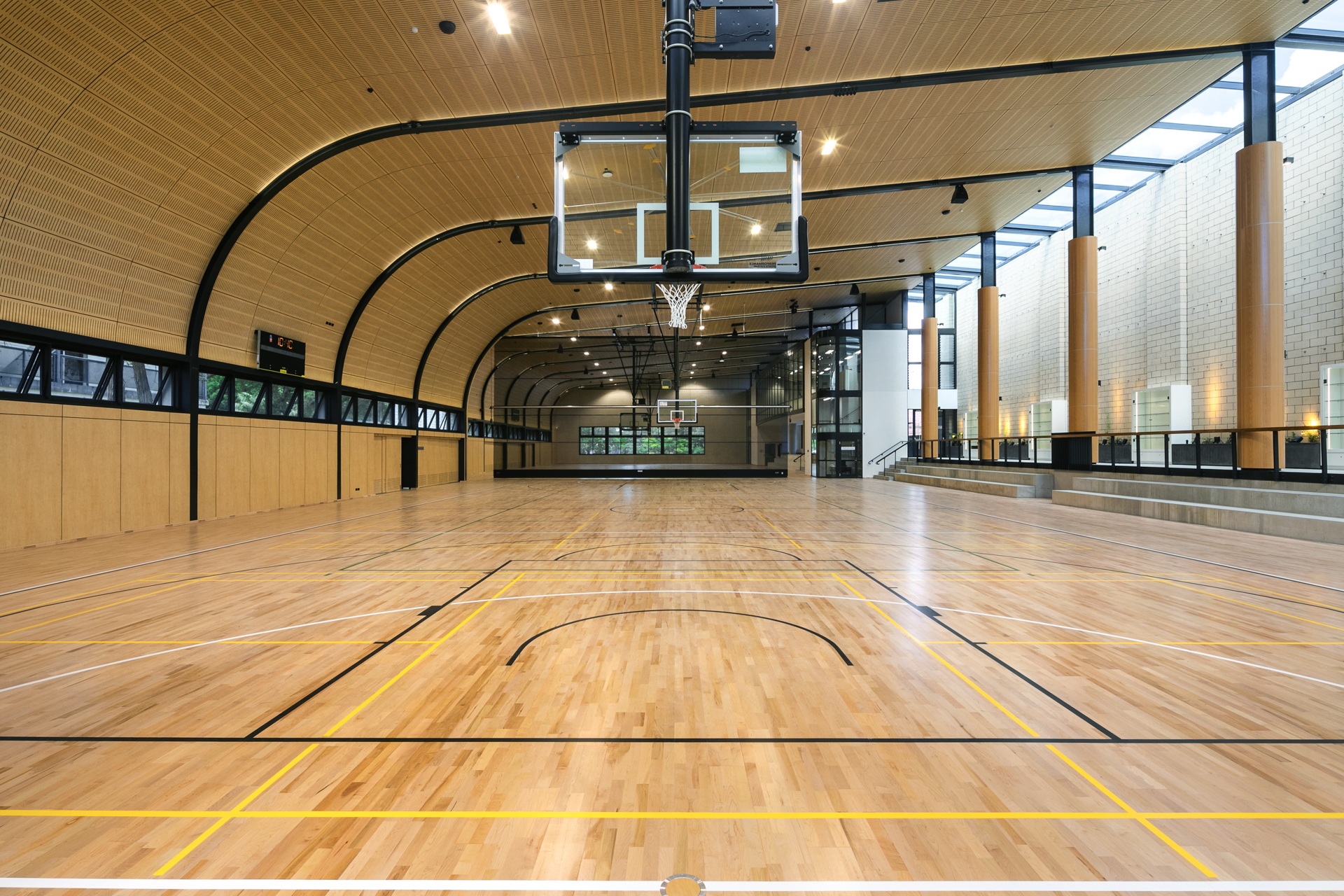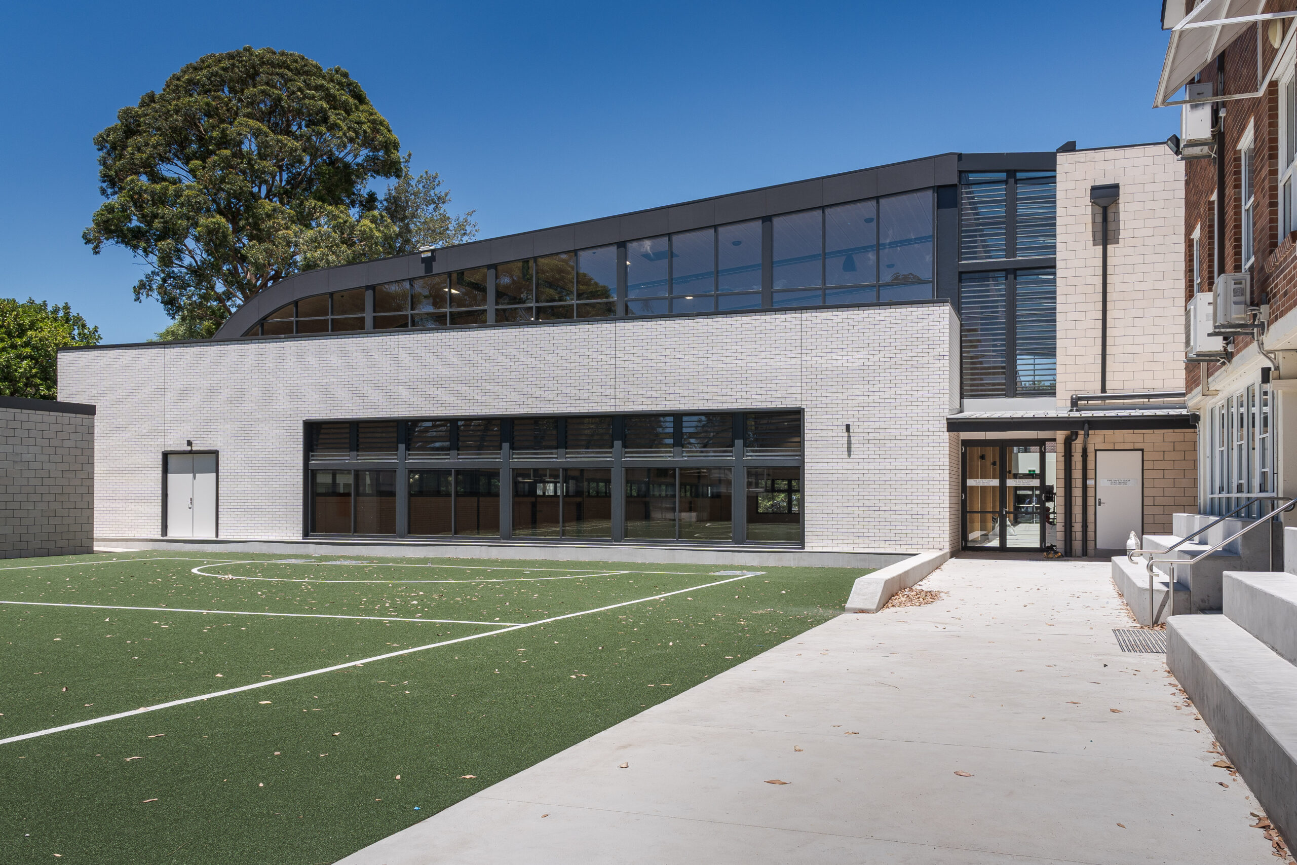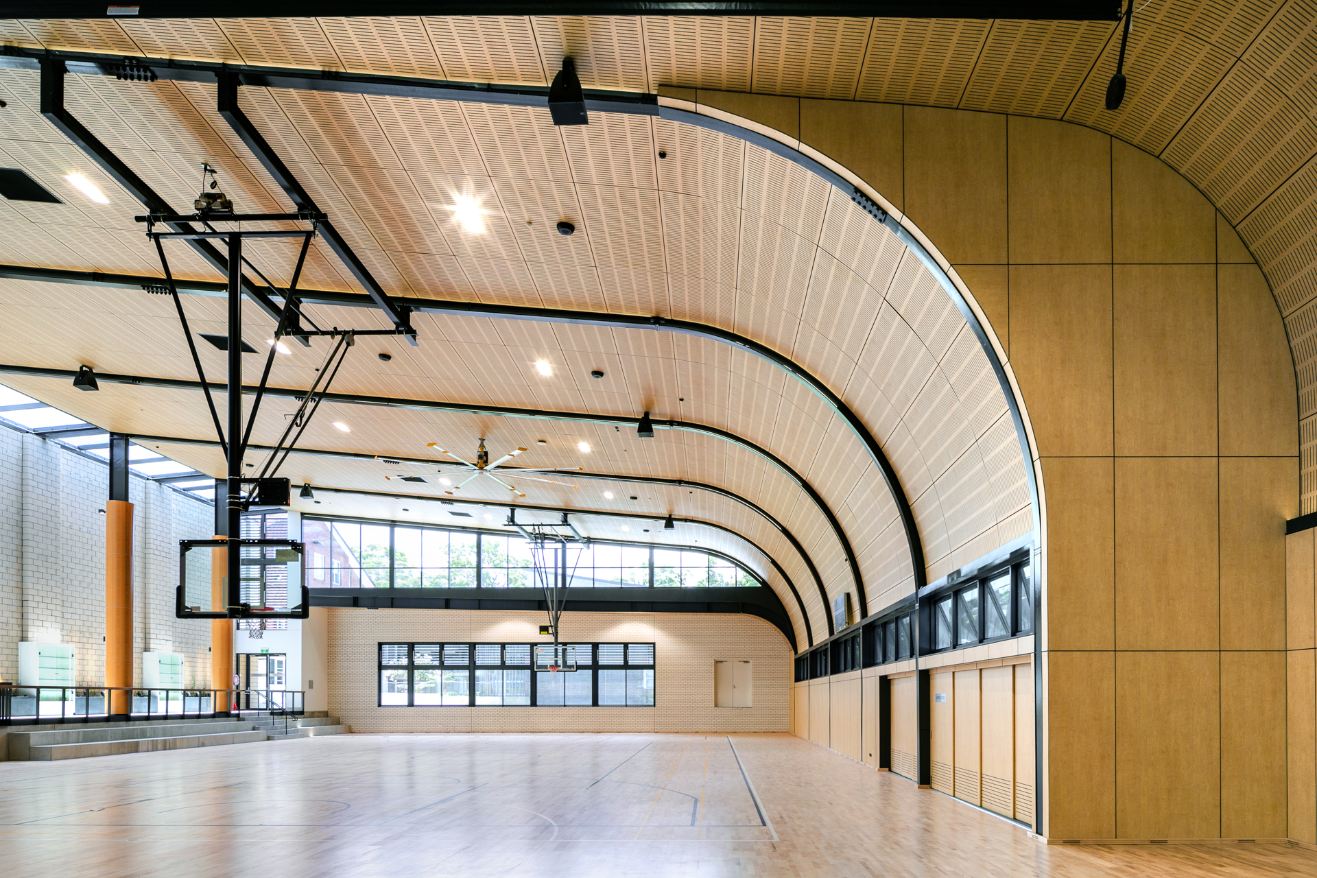 A new sports facility at Brigidine College, St Ives, featuring two indoor basketball courts designed for multiple functions. The facility supports physical education, sports programs, and serves as a versatile venue for college events, including open days, lectures, and examinations. ​