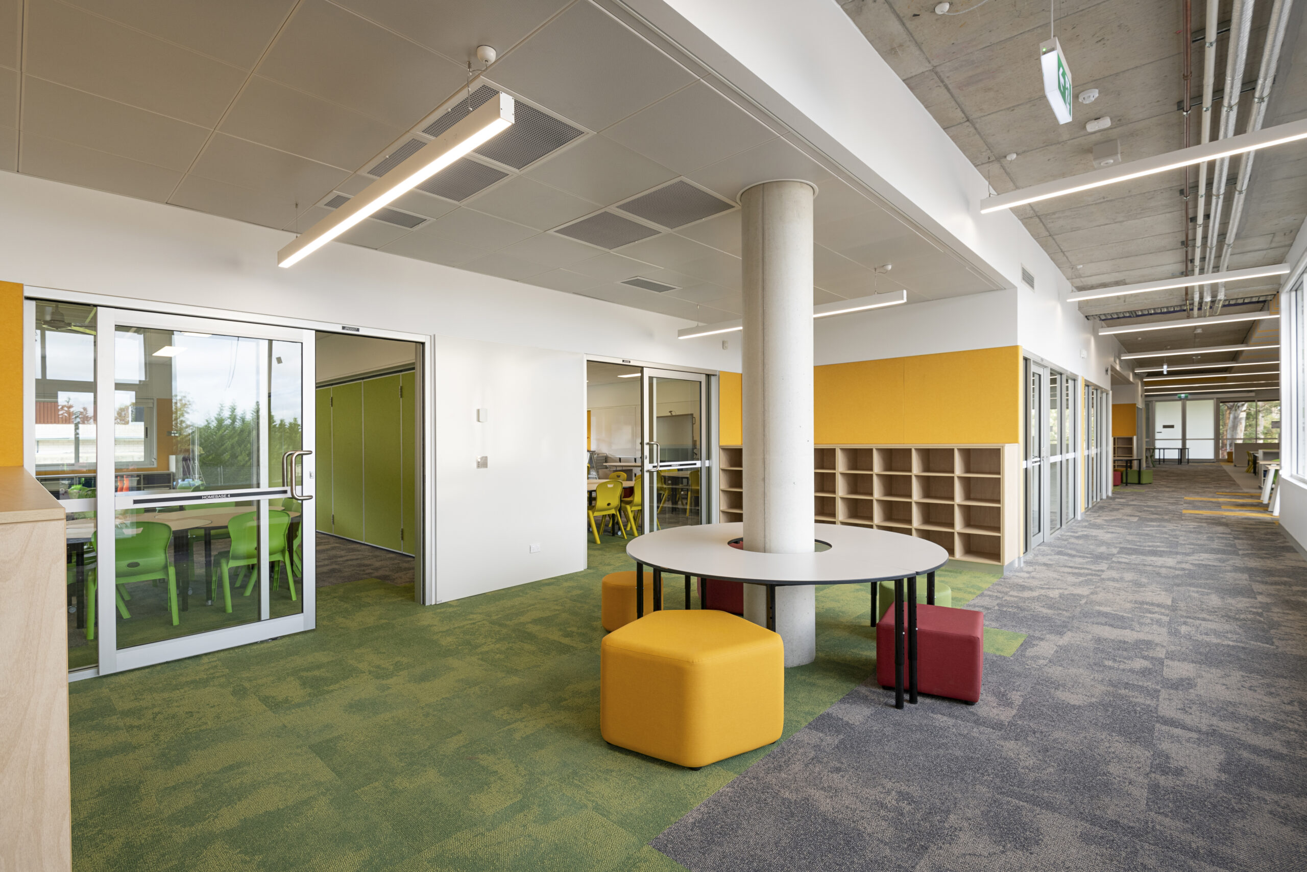 In 2023, Stage 1 of the Wilton Public School upgrade was completed, delivering a brand-new two-storey learning building with 22 permanent, flexible, air-conditioned classrooms—including support unit spaces—fully equipped with modern technology. The works also included major improvements to core facilities, with upgrades to the administration block, library, canteen, and hall, plus a new covered outdoor learning area, covered walkways, and expanded parking.